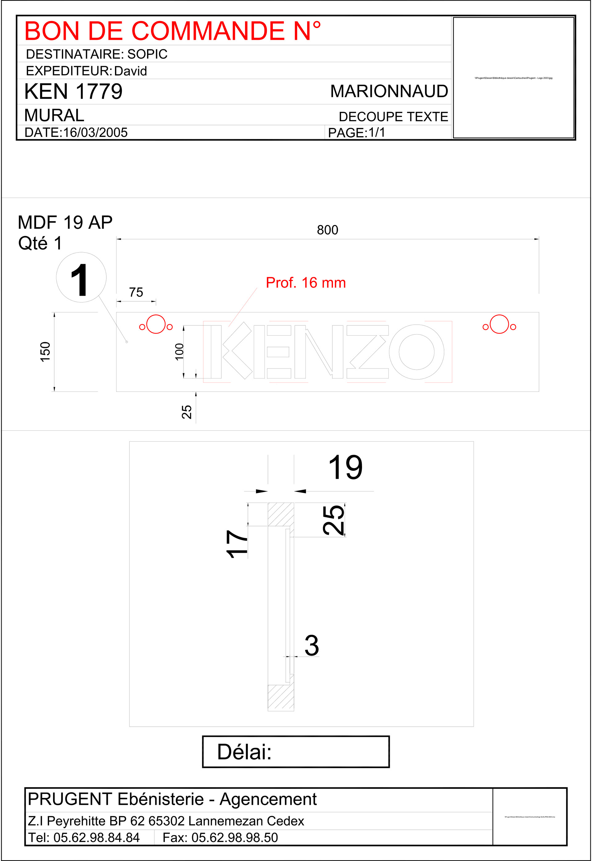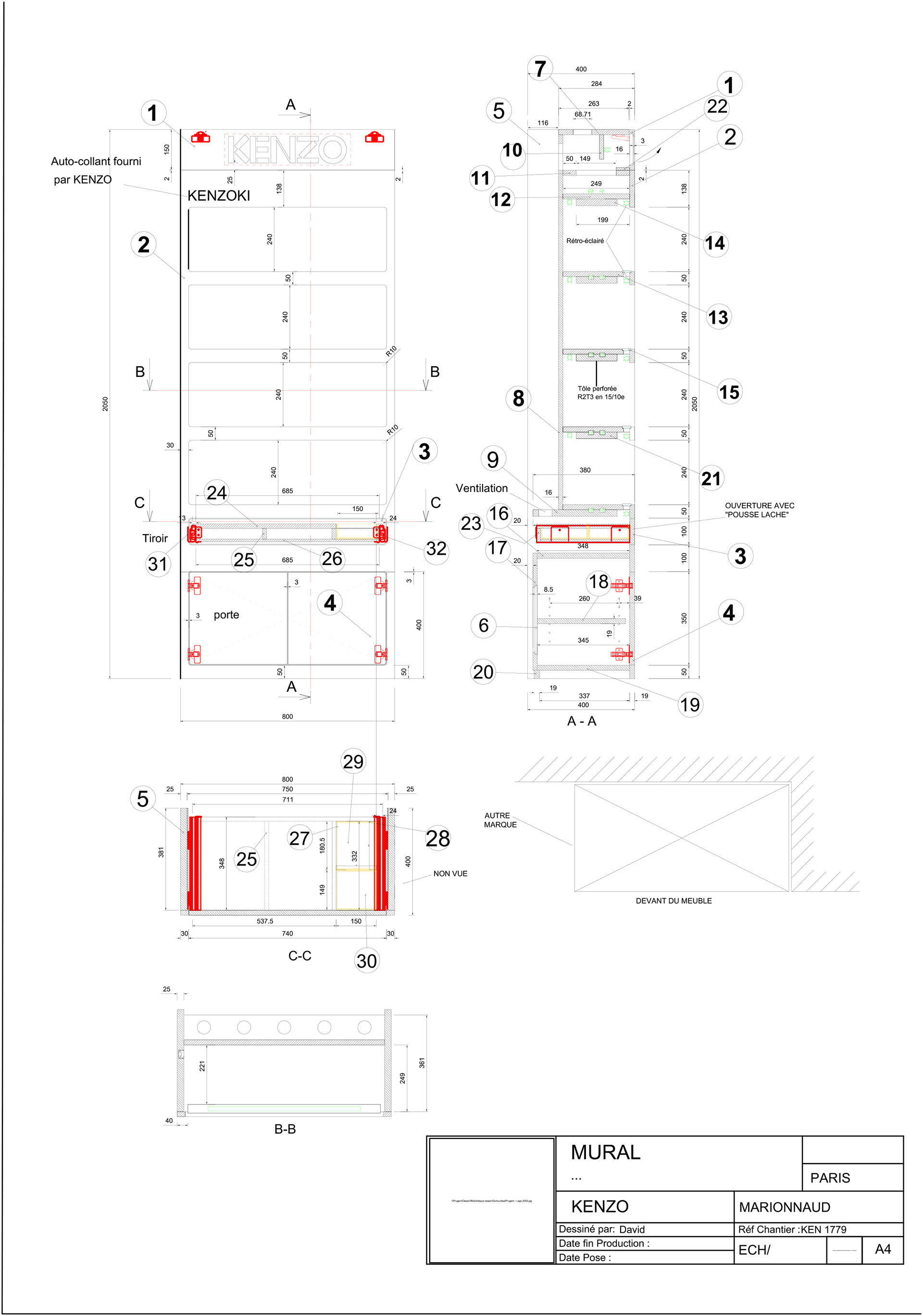 plans d'exécution pour prugent ébénisterie